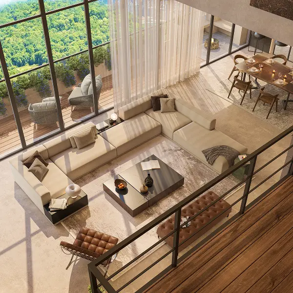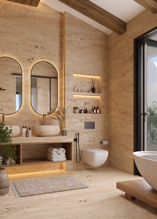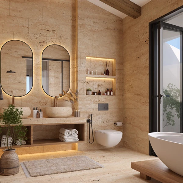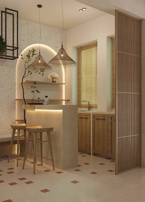 We utilize a holistic strategy that merges architecture, interior design, product design, and art curation to create immersive spaces that deftly balance visual appeal with practical use. Our dedication to quality and eco-friendly practices is evident in how we integrate local materials and traditional craftsmanship, ensuring every sustainable design precisely fulfills the client’s vision.